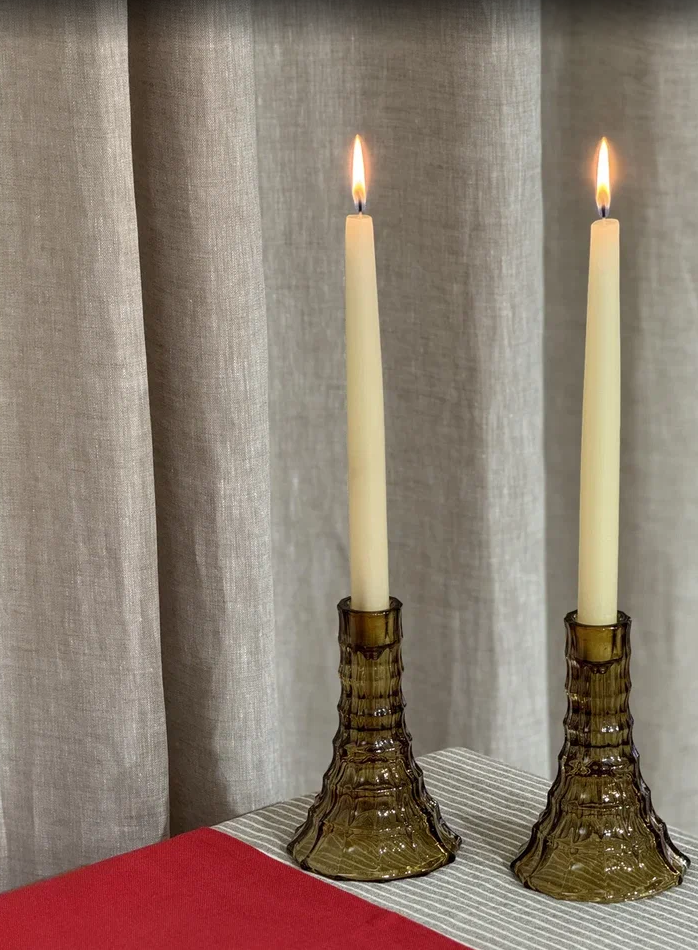 Этот подсвечник изготовлен из стекла приглушенного янтарного оттенка. Он имеет интересную форму, напоминающую перевёрнутый рюмку или воронку, с широким основанием, которое постепенно сужается к верхней части. Поверхность подсвечника отличается рельефными горизонтальными полосами, которые создают визуально текстурированный эффект. Золотисто-янтарный оттенок придаёт изделию теплую и уютную атмосферу, что делает его отличным элементом декора для создания уюта.