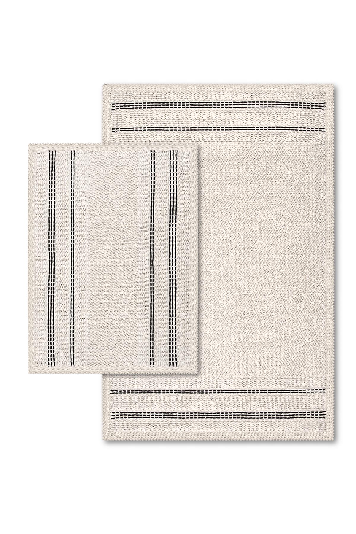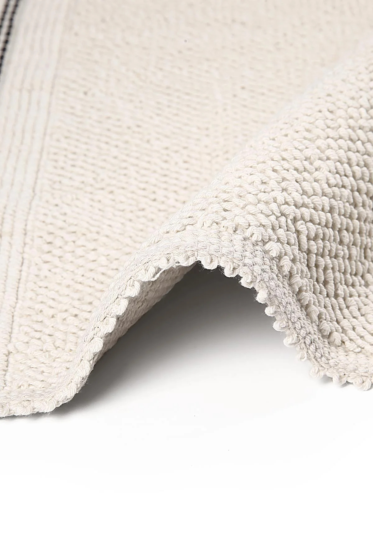 Натуральные хлопковые коврики дарят мягкость и комфорт после душа, быстро впитывают влагу и приятно согревают ступни. Плотное тканое полотно с выразительной текстурой и аккуратной рамкой с контрастными полосами легко впишется в современный, сканди или минималистичный интерьер.