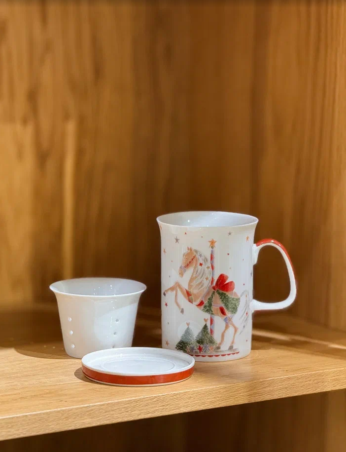 Кружка новогодняя с крышкой в подарочной упаковке, 380 мл