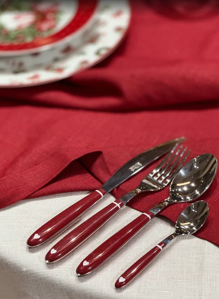 Набор столовых приборов Love с красной ручкой, 24 шт.