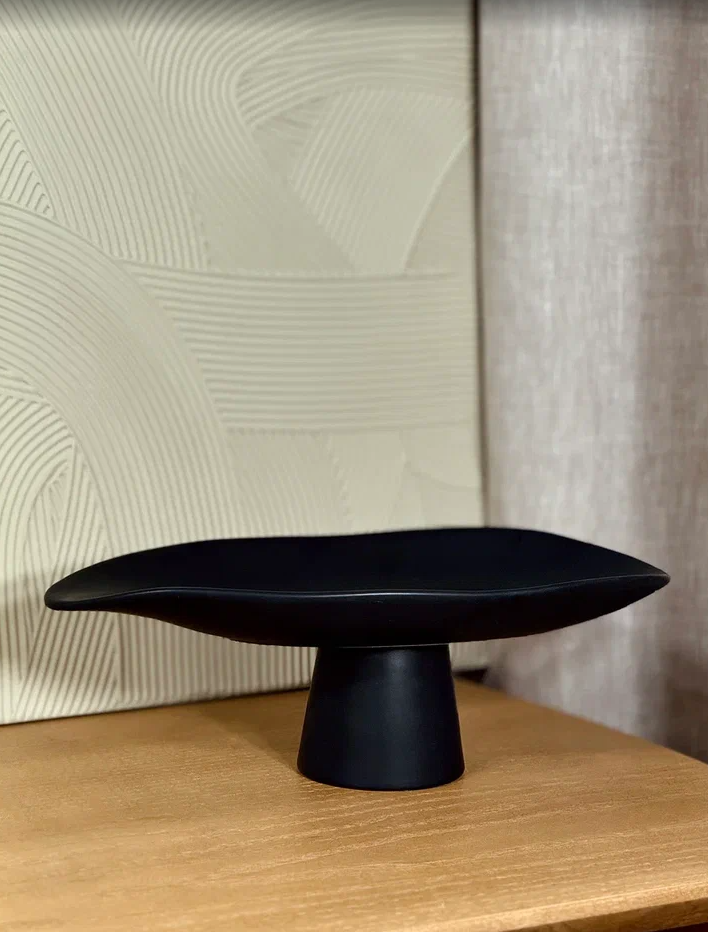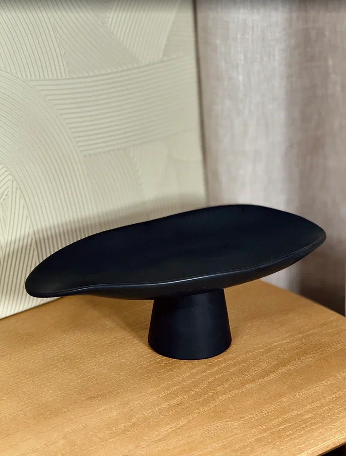 Блюдо керамическое на ножке большое 46х20,5 см, черный