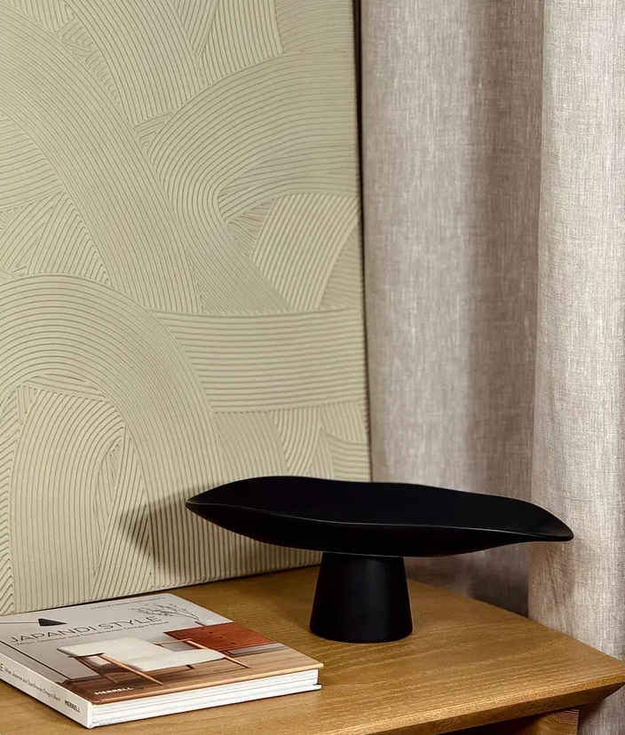 Блюдо керамическое на ножке среднее 31х10,5 см, черный