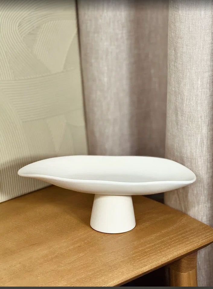 Блюдо керамическое на ножке среднее 31х10,5 см, молочный