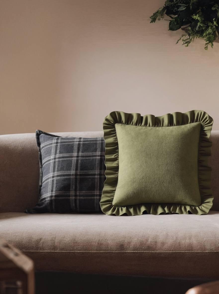Декоративная подушка Olive с воланами, 50x50, хлопок, оливковая