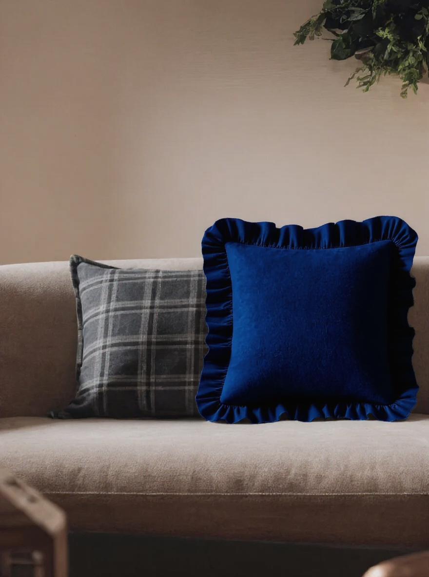Декоративная подушка Olive с воланами, 50x50, хлопок, синяя