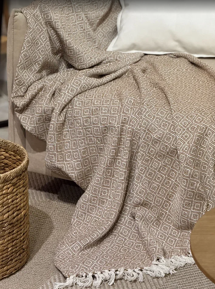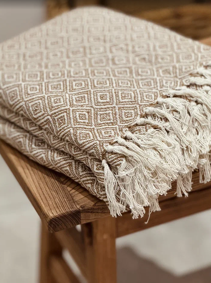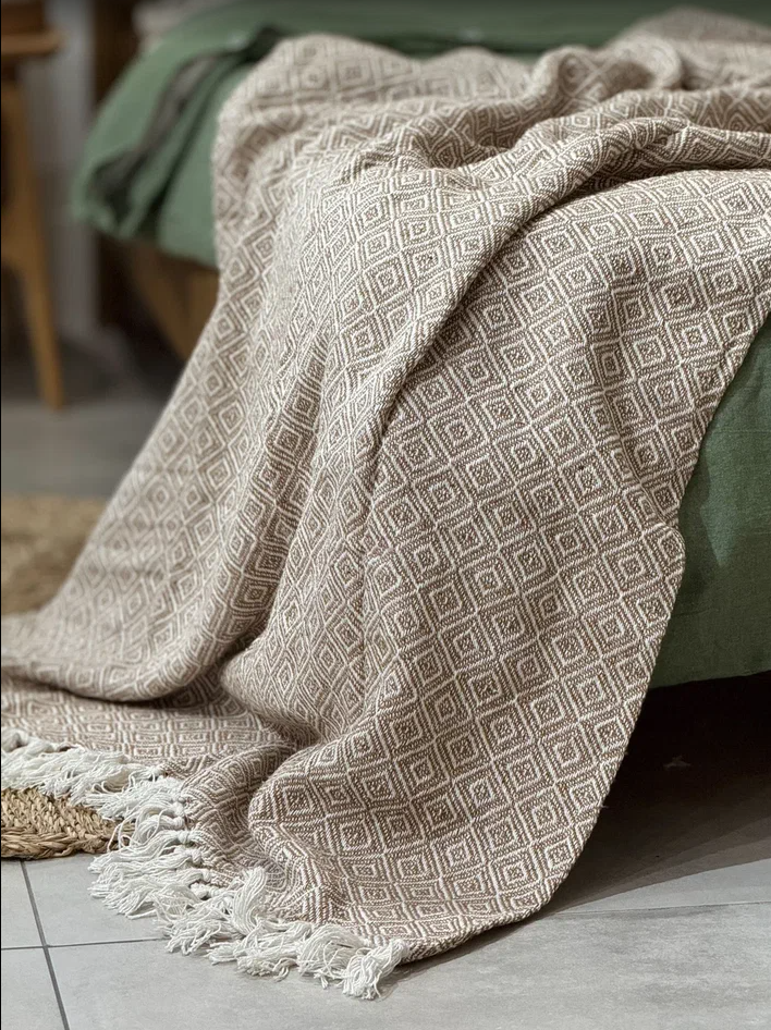 Плед декоративный Diamond, 200х240, хлопок, бежевый