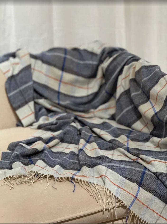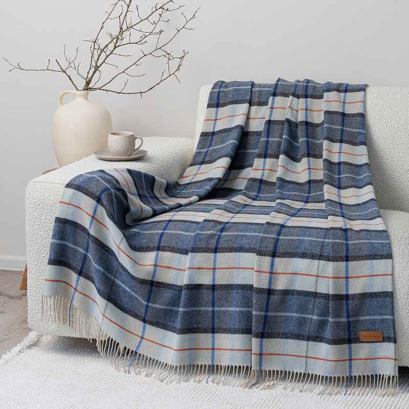 Плед декоративный Тревизо, 150х200, 80% шерсть, 20% полиэфир, синяя клетка