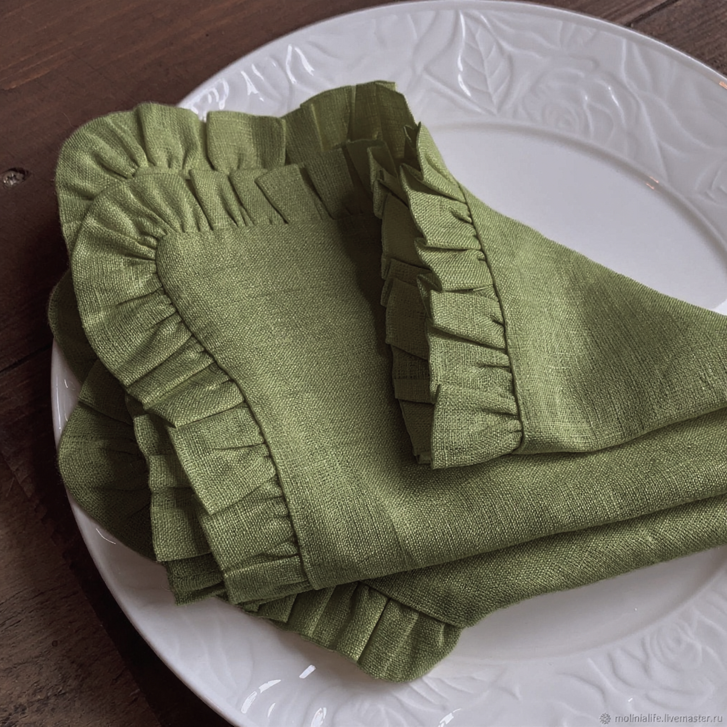 Набор из 2-х салфеток с воланами 40x50 см из натурального льна, оливковый