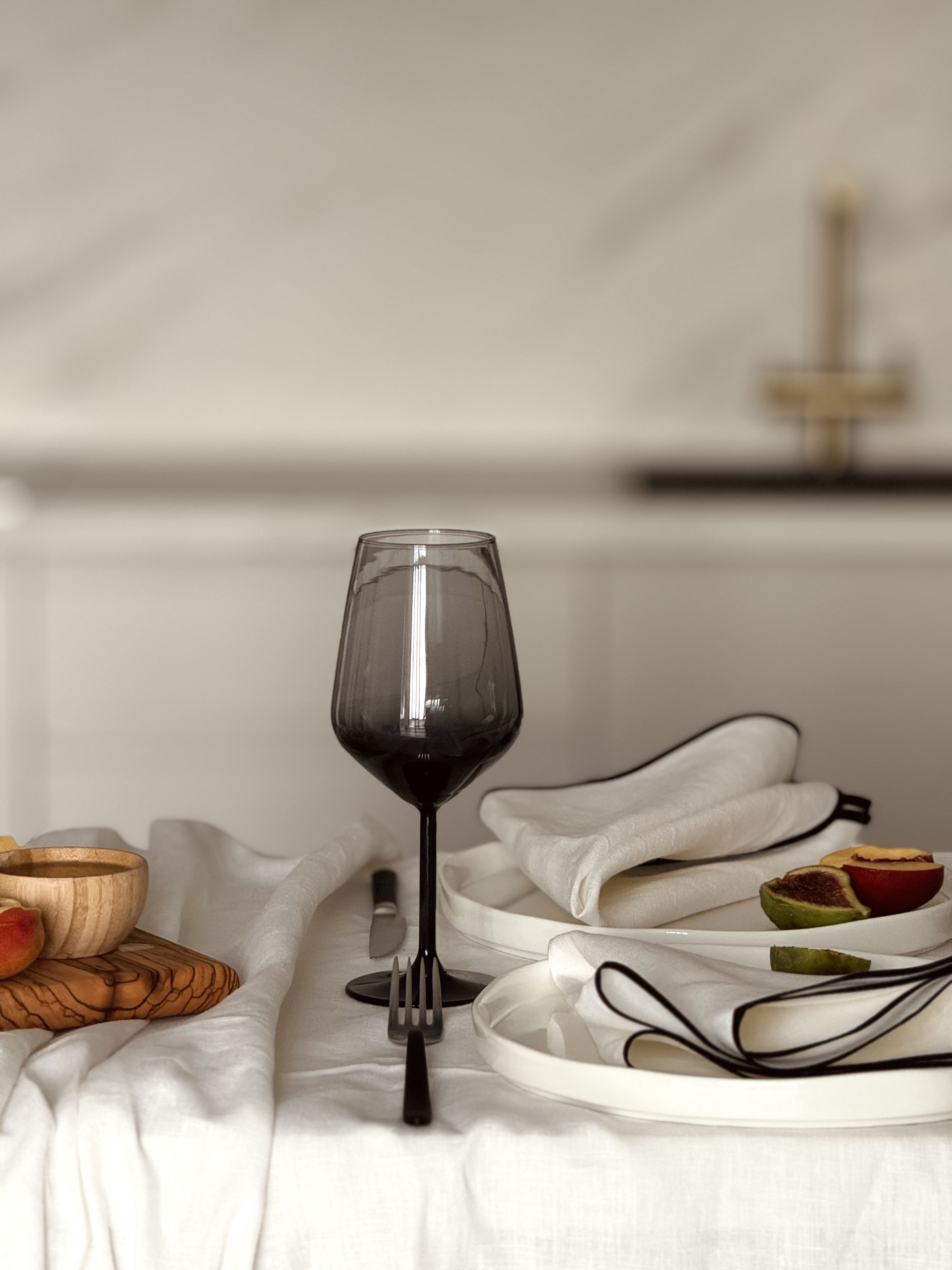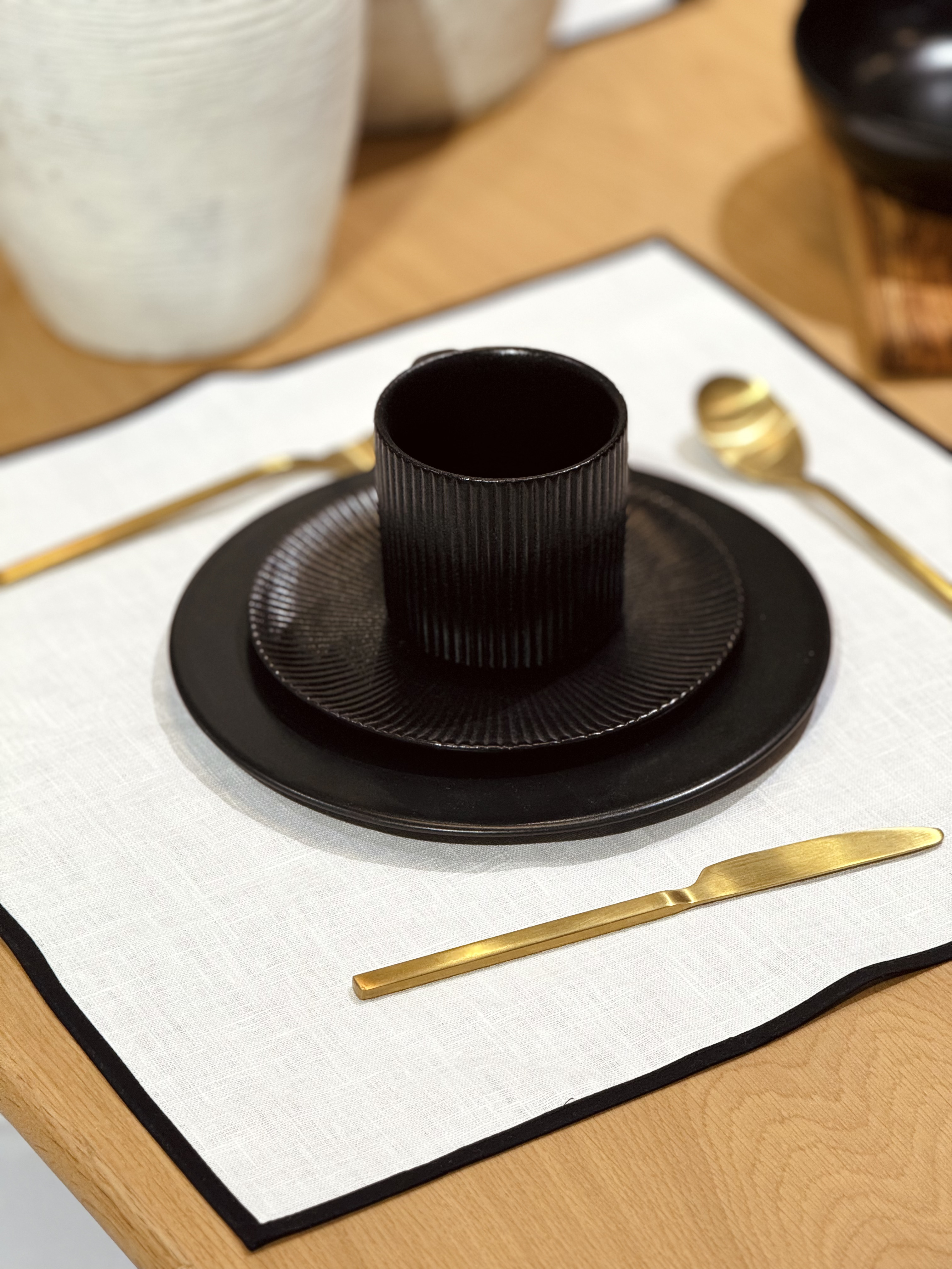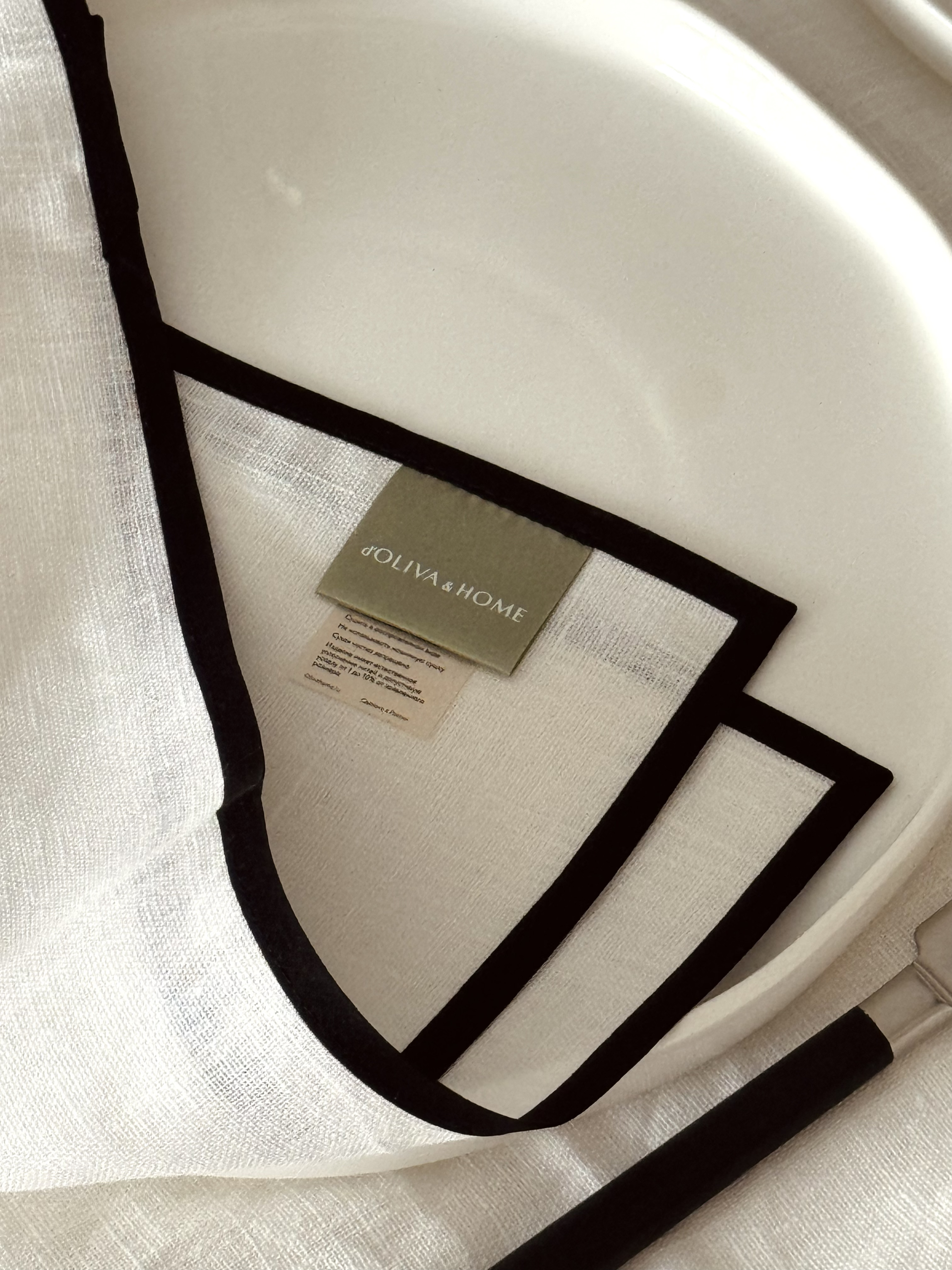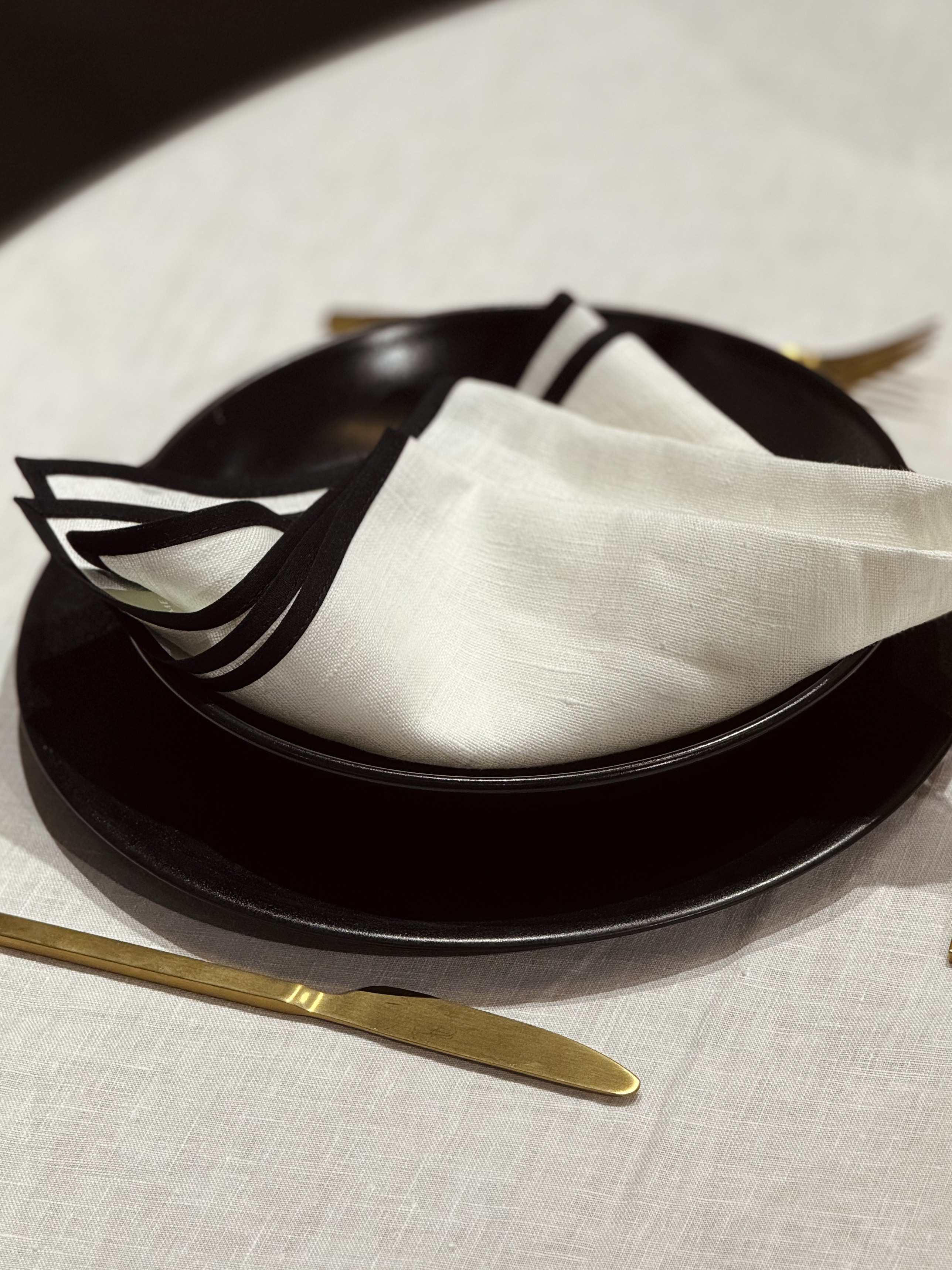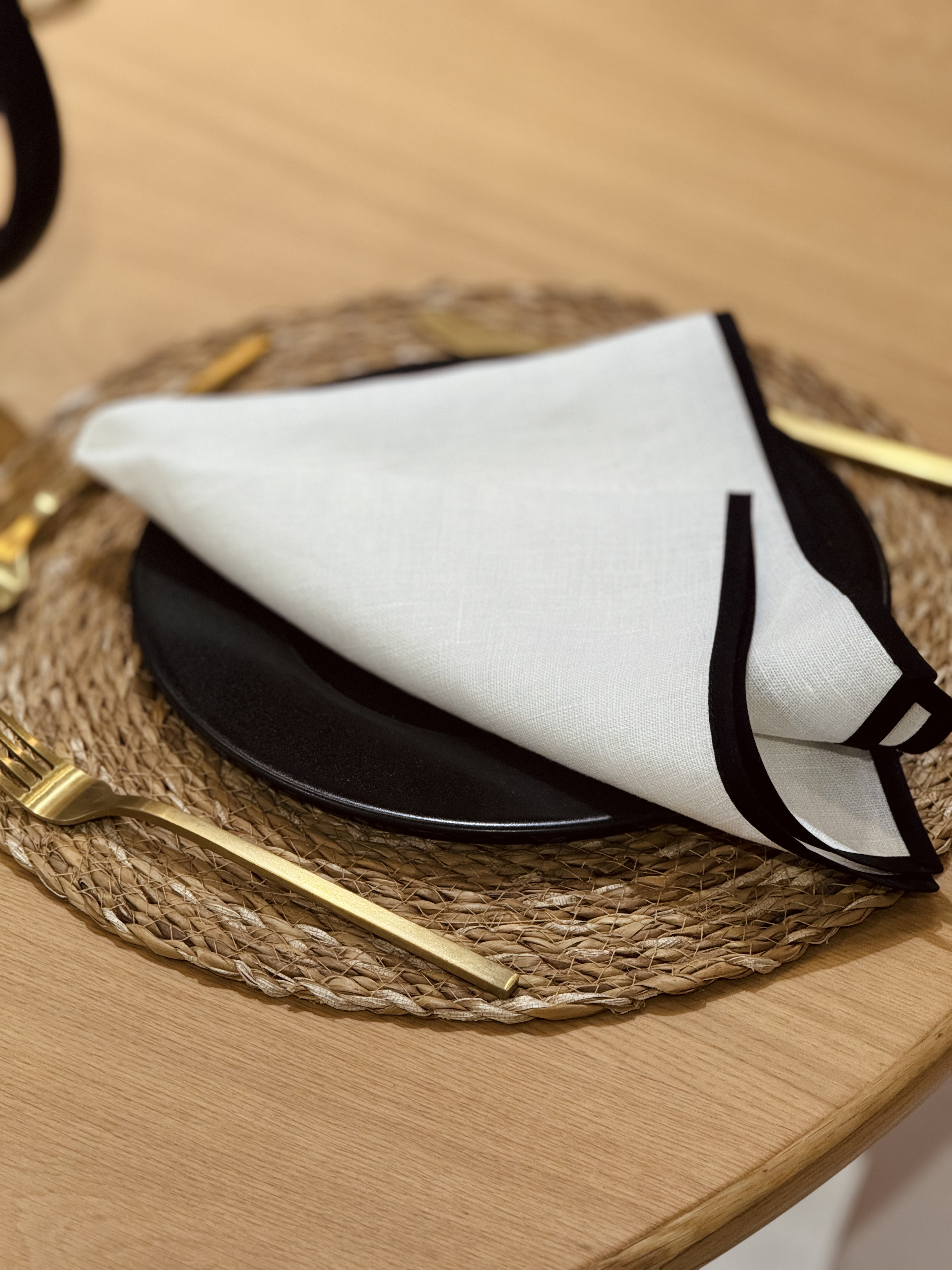 Лаконичная и эффектная салфетка из 100% льна с контрастным черным кантом - стильный акцент для современной сервировки. Натуральный лен приятен на ощупь, хорошо впитывает влагу, держит форму и с каждым использованием становится мягче. Универсальная черно‑белая гамма легко сочетается с любой посудой и подойдет как для повседневных ужинов, так и для праздничного стола.