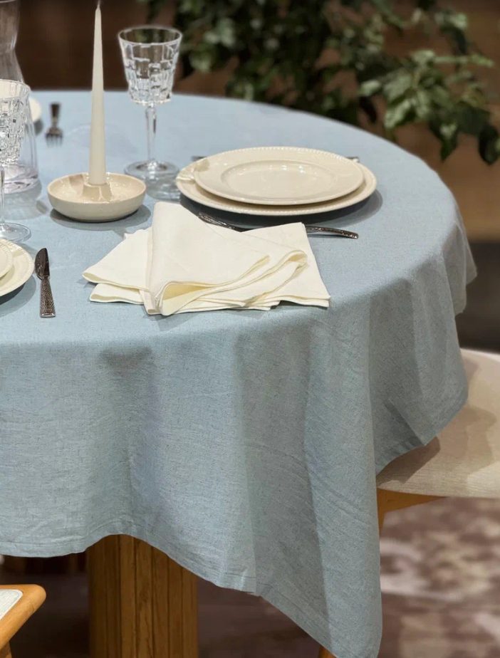 Ощутите дыхание природы с нашими эксклюзивными скатертями из натурального льна, который является прочным и долговечным материалом, а нежные, приглушенные цвета придадут обеденной зоне изысканный вид.